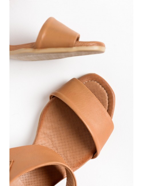• A stunning tan leather heel with textured foot bed for extra support and comfort