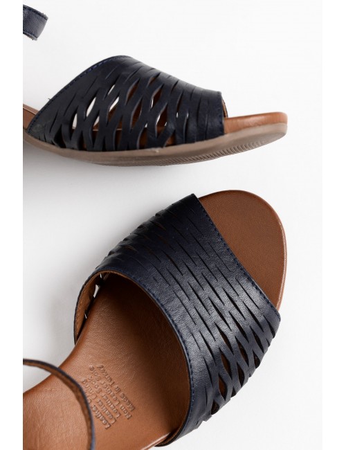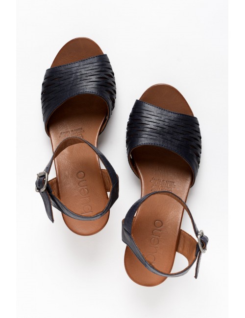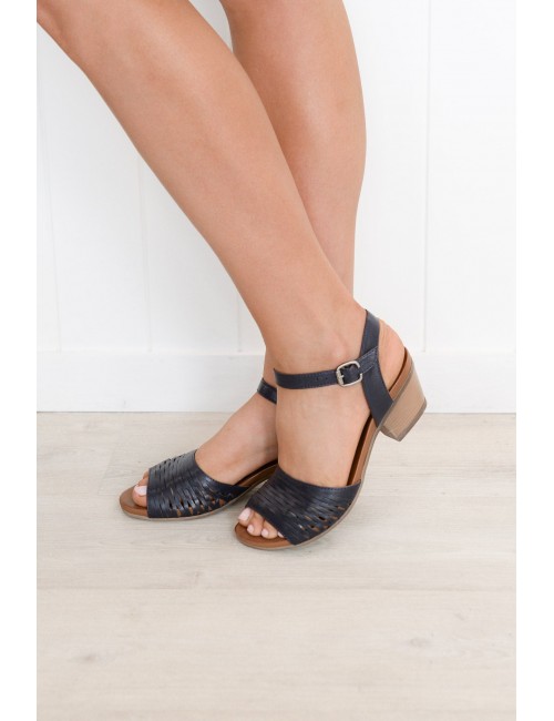 • A stunning summer heel with a navy cut out leather front strap