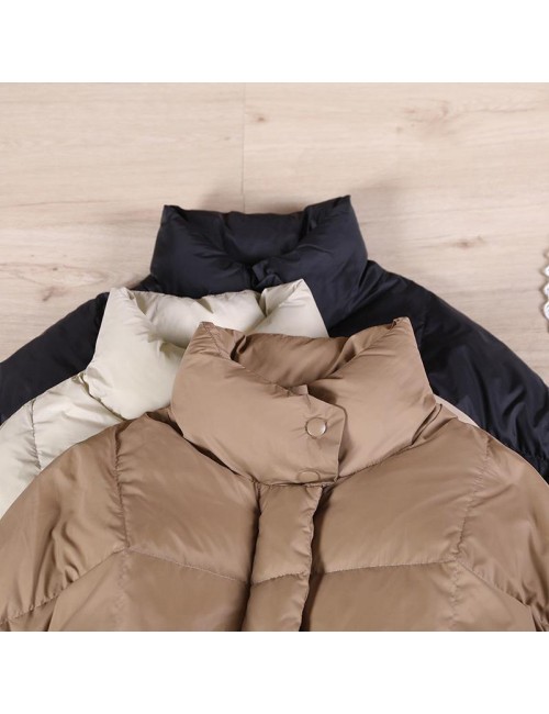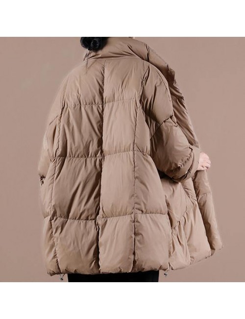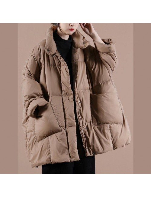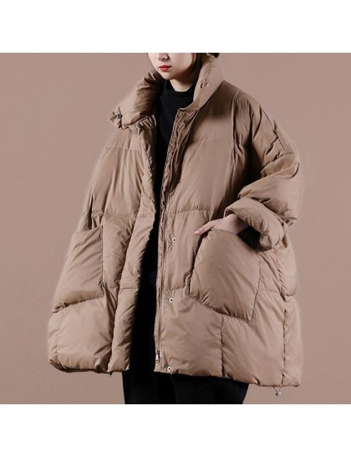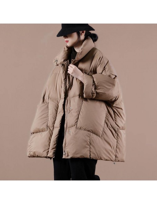 Warm chocolate goose Down coat Loose fitting winter jacket stand collar Large pockets Warm outwear