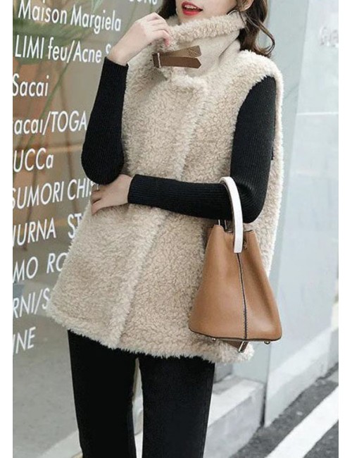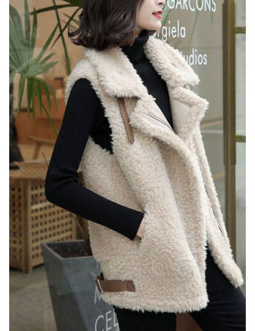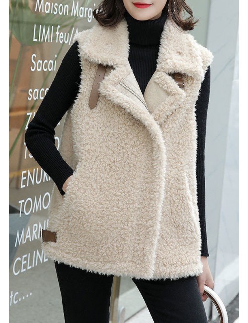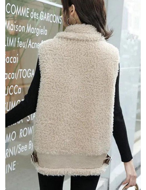 Bohemian Khaki Zip Up Pockets Faux Fur Winter Vest