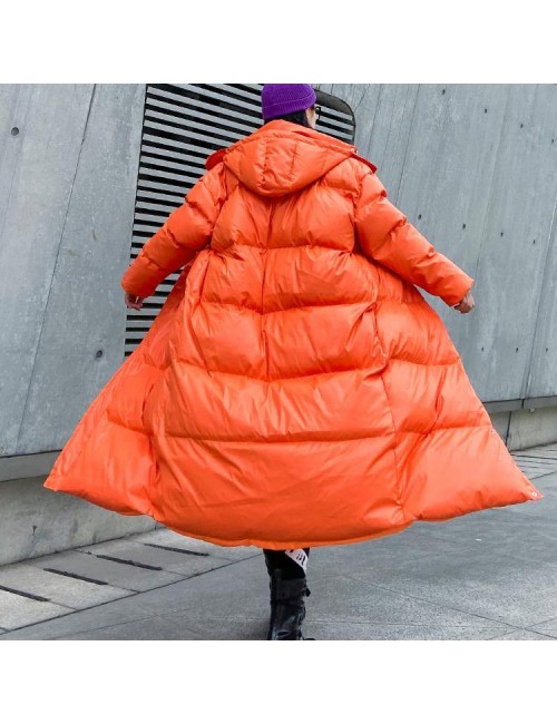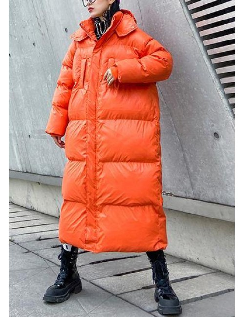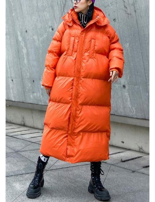 Luxury orange outwear oversized down jacket hooded zippered overcoat