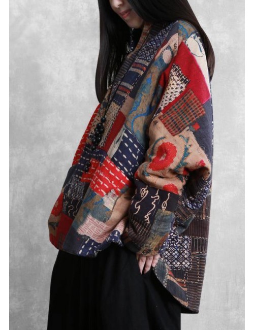 New plus size warm winter coat floral v neck pockets Parkas for women