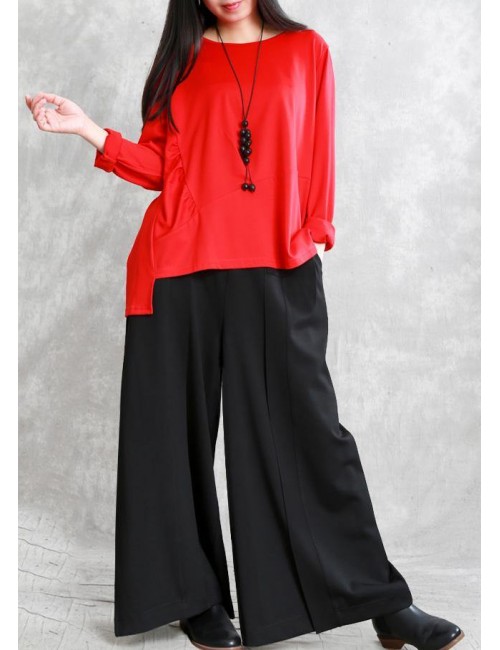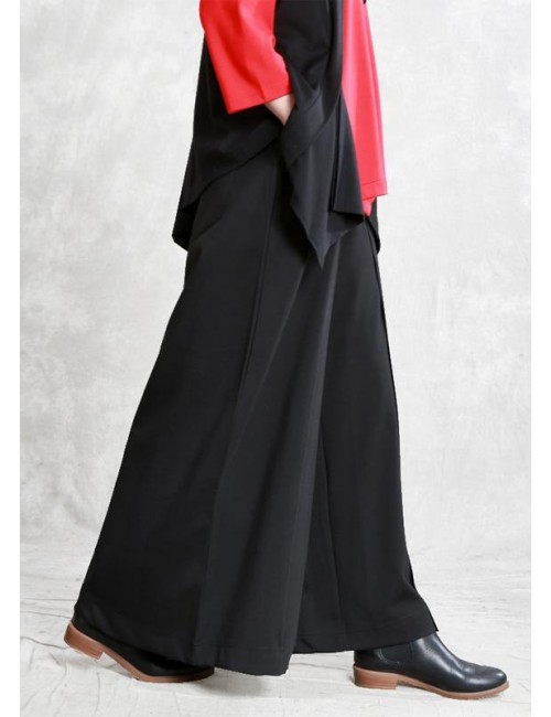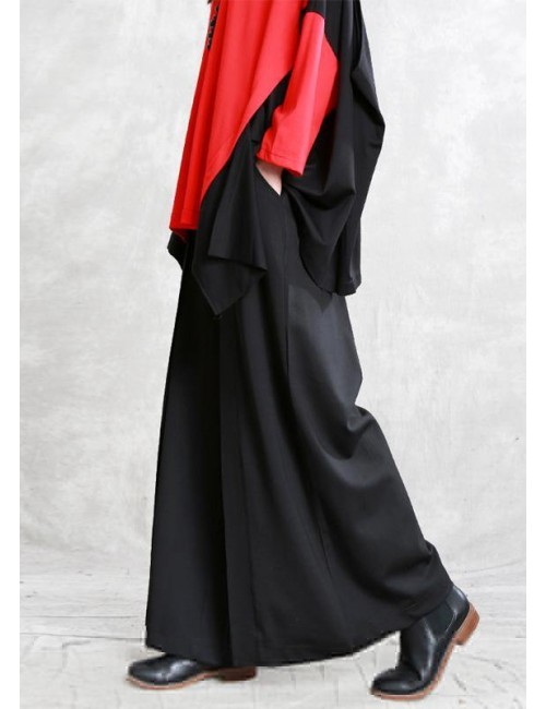DIY black pants Thinelastic waist asymmetric pattern pants