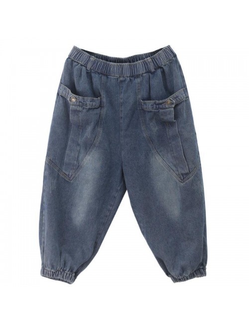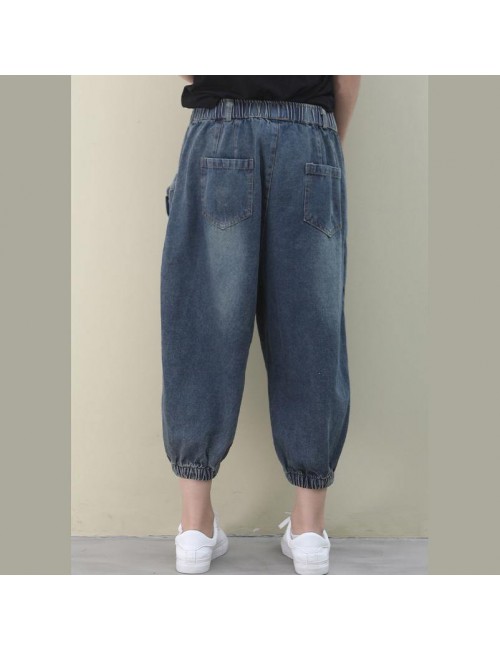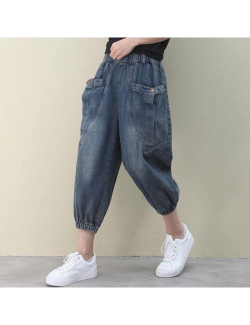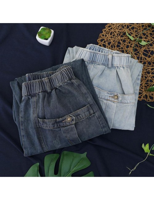 Elegant dark denim blue trousers summer pockets Cotton shorts