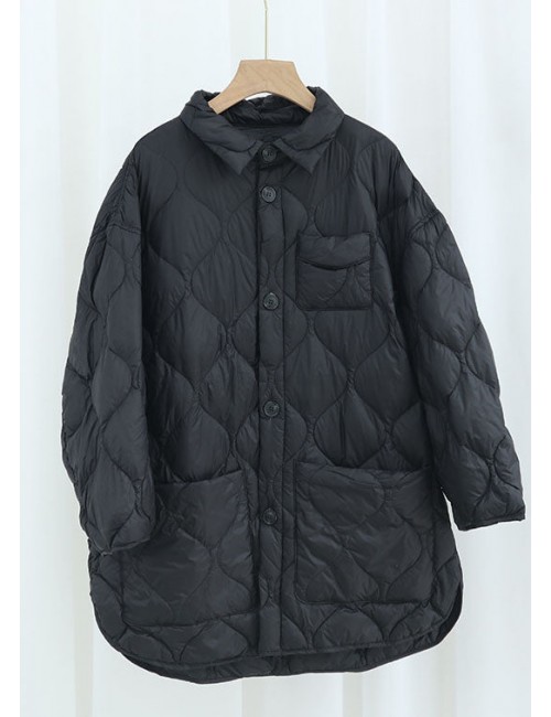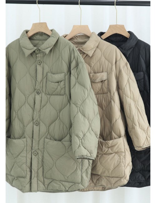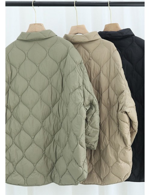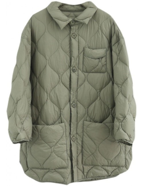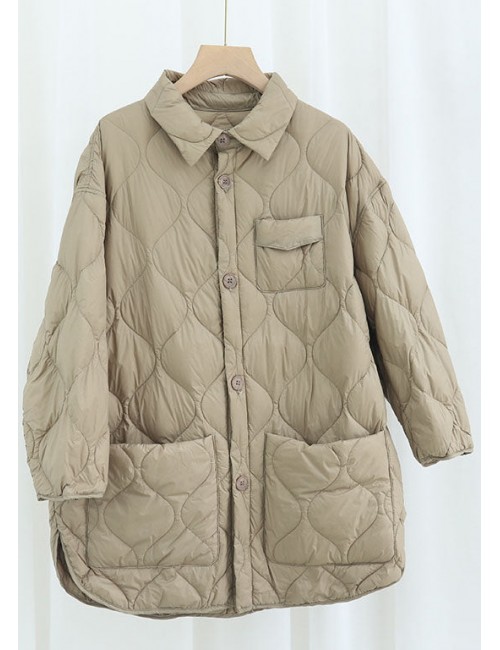 Elegant Khaki PeterPan Collar Pockets Button Winter Duck Down Coat