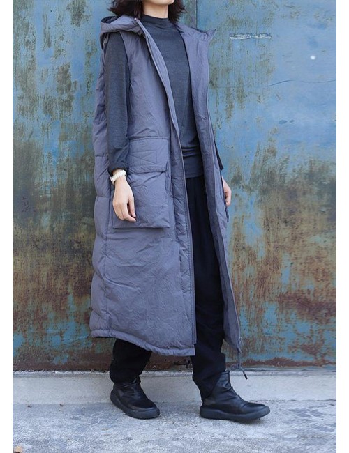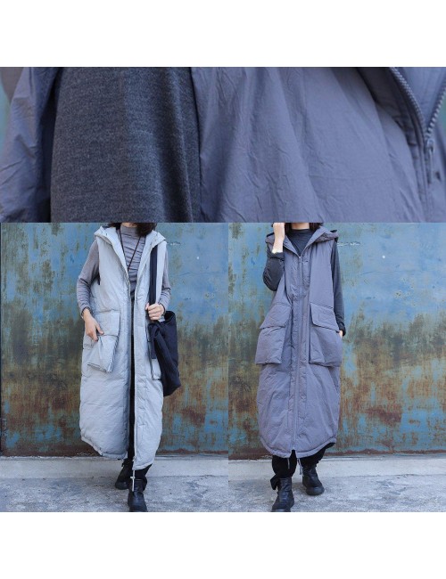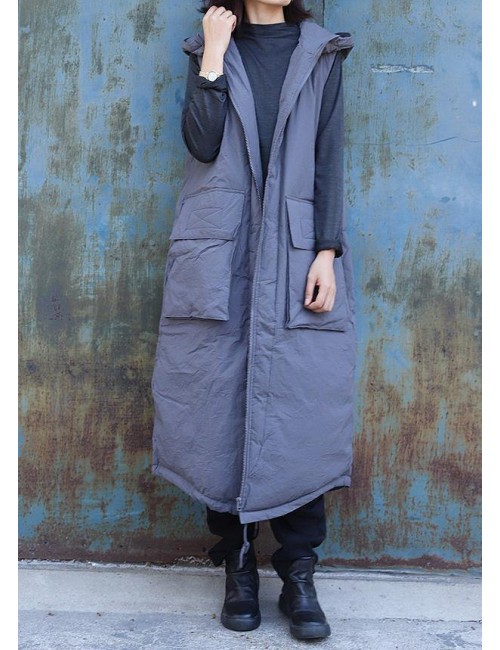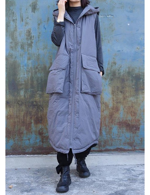 women plus size clothing winter jacket stand collar coats dark gray hooded sleeveless coats