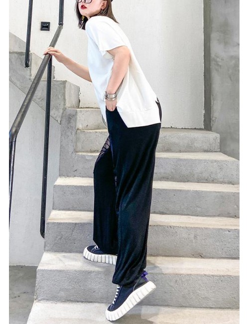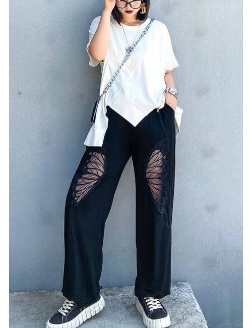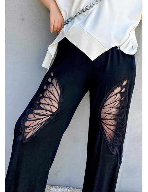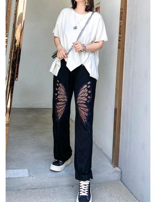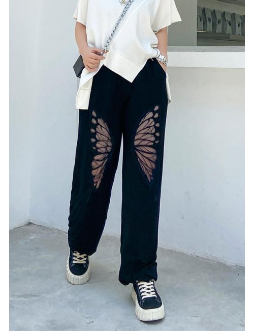 Summer high waist thin big pants women black butterfly pattern Harlan casual trousers